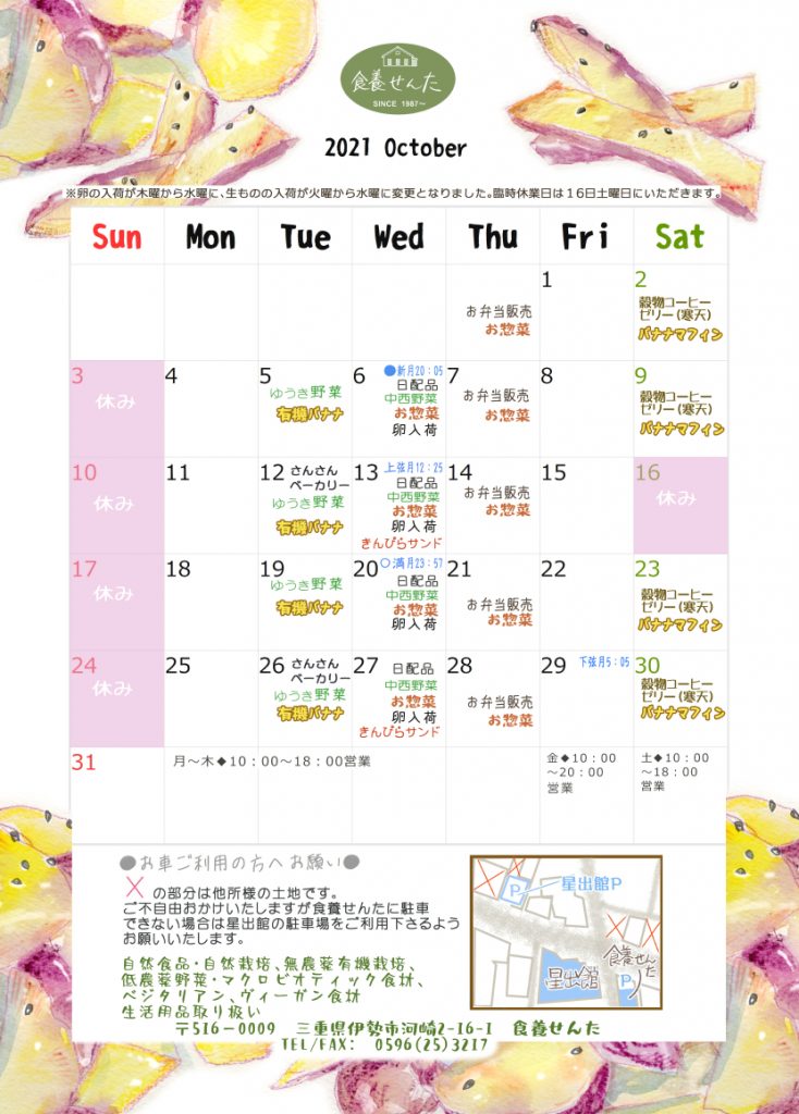 ↓こちらはサンプルです。無記入版のダウンロードはこちらから→10月のカレンダー(A4判)